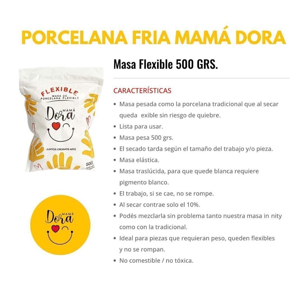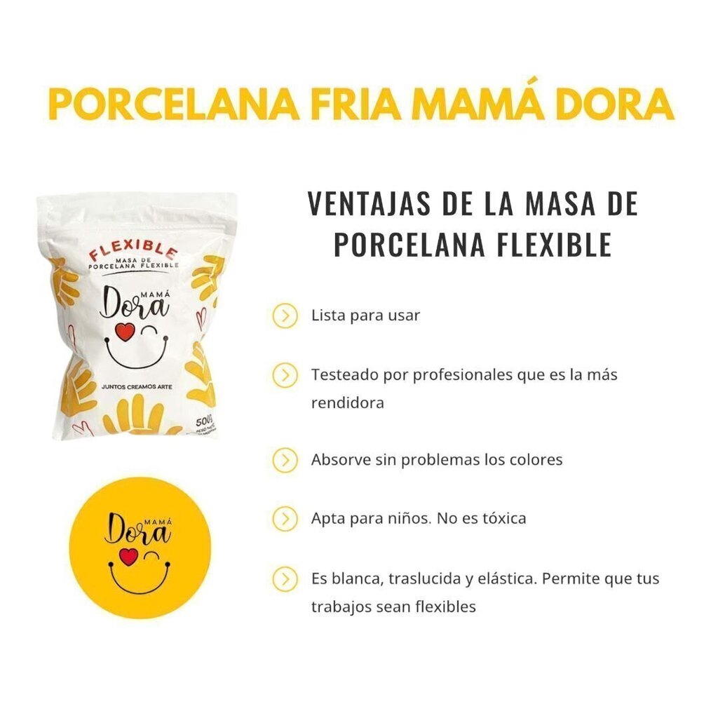La Caja de Porcelana Fría de la marca Mamá Dora Flexible es la opción perfecta para quienes buscan una experiencia de modelado única y creativa. Con un peso de 500 gramos por unidad, este producto es ideal para proyectos de artesanía y manualidades que requieren una textura suave y maleable. Su fórmula no tóxica asegura que sea seguro para el uso en una variedad de entornos, permitiendo la creación de figuras, decoraciones y manualidades sin preocupaciones.La versatilidad de la porcelana fría Mama Dora se adapta tanto a principiantes como a expertos en el arte del modelado. Al ser flexible, permite una amplia gama de técnicas y estilos, lo que estimula la creatividad y el desarrollo de habilidades artísticas. Además, la consistencia de este material facilita el trabajo detallado sin sacrificar la calidad.Ideal para trabajar en casa, para talleres o actividades educativas, esta porcelana fría es la elección preferida de muchos artistas y amantes de las manualidades. Ya sea para hacer regalos personalizados, decorar eventos o crear esculturas, con Mama Dora Flexible, las posibilidades son infinitas.