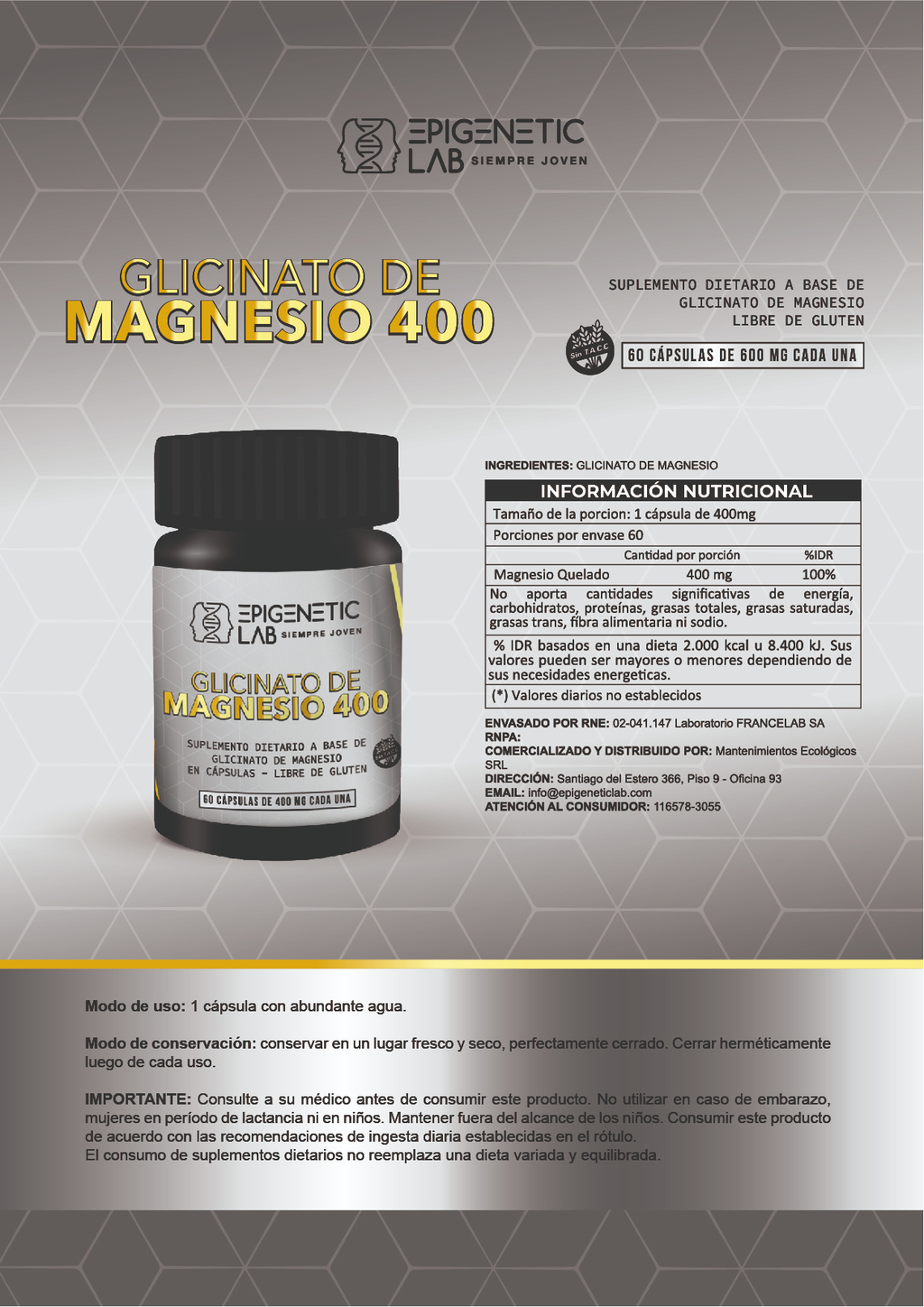 El glicinato de magnesio es una forma quelada de magnesio, lo que significa que está unido a la glicina, un aminoácido que aumenta su absorción en el intestino. Esta forma única permite que el magnesio se absorba más eficientemente en el cuerpo en comparación con otras formas de suplementos de magnesio, como el óxido de magnesio.