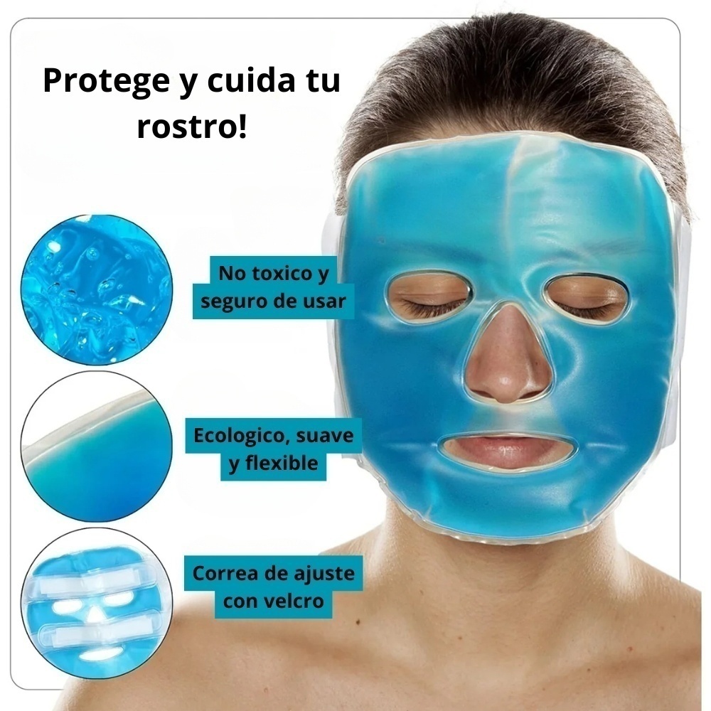 El uso de la mascara fria lleva todos los beneficios de la crioterapia a la comodidad de tu casa. Los beneficios son:- Mejora la apariencia de las líneas de expresión facial.- Disminuye levemente la grasa acumulada en pómulos.- Ayuda como tratamiento facial para cerrar los poros.- Tonifica y afirma los músculos- Elimina el dolor de cabeza, cansancio, estrés, ojos hinchados y la resaca.- Ayuda a controlar la migrañaEl uso de la mascara caliente lleva todos los beneficios de la termoterapia a la comodidad de tu casa. Los beneficios son:- Congestión nasal.- Sinusitis.- Limpieza de piel (exfoliador).Descripcion y modos de uso:FRIO:- Lleve el producto al refrigerador / congelador por 1 hora.- Colóquelo en la parte del cuerpo para la cual ha sido diseñado durante 30 minutos- Repita ese proceso cuantas veces sea necesario de acuerdo a las recomendaciones médicas.CALOR- Caliente suficiente agua para sumergir el producto.- Lleve el agua a un recipiente lo suficientemente grande la sumergir la mascara para que aumente la temperatura del producto.- Utilícelo en la parte del cuerpo para la cual ha sido diseñado hasta que pierda calor.RECOMENDACIONES GENERALES- Utilice una tela de algodón como protector- Si su piel es muy sensible se recomienda comenzar a utilizar los productos en sesiones cortas (de 10 a 15 minutos).- No congele ni almacene alterando la forma original de este producto.- Lávelo con un jabón de tocador y déjelo secar sobre una toalla, no retorcer.