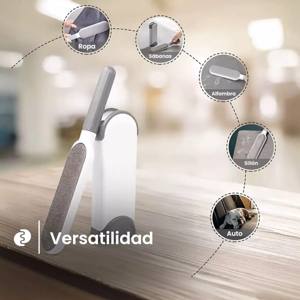 El aliado perfecto para eliminar pelos y pelusas de tus mascotas de manera rápida y eficiente. Ideal para mantener tus muebles, ropa y textiles impecables.Fabricado con materiales resistentes, sin necesidad de adhesivos ni electricidad, es reutilizable y respetuoso con el medio ambiente. • Limpieza fácil y rápida: Cepillo de doble cara que reduce el tiempo de limpieza a la mitad, ideal para muebles tapizados, ropa, alfombras y más.• Tecnología innovadora: Micro cerdas que atrapan hasta la última pelusa o pelo, sin necesidad de recambios.• Sistema autolimpiante: Sumergí el cepillo en la base de limpieza para retirar los restos de manera sencilla.