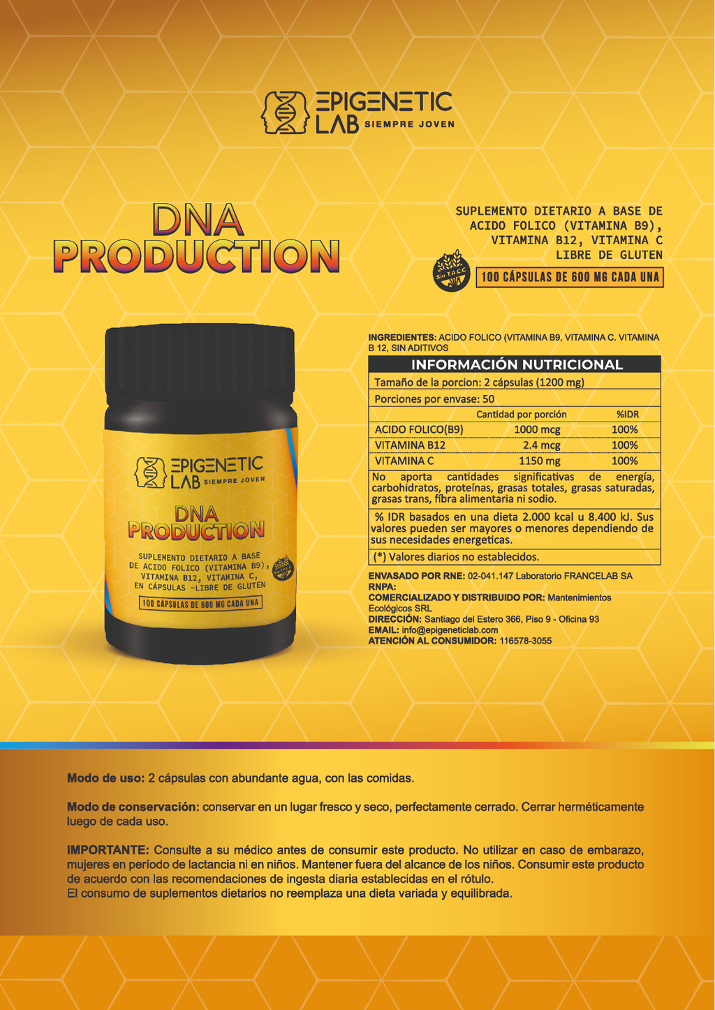 DNA PRODUCTION X 100 CAPSULAS DE 600 MG SIN TACC