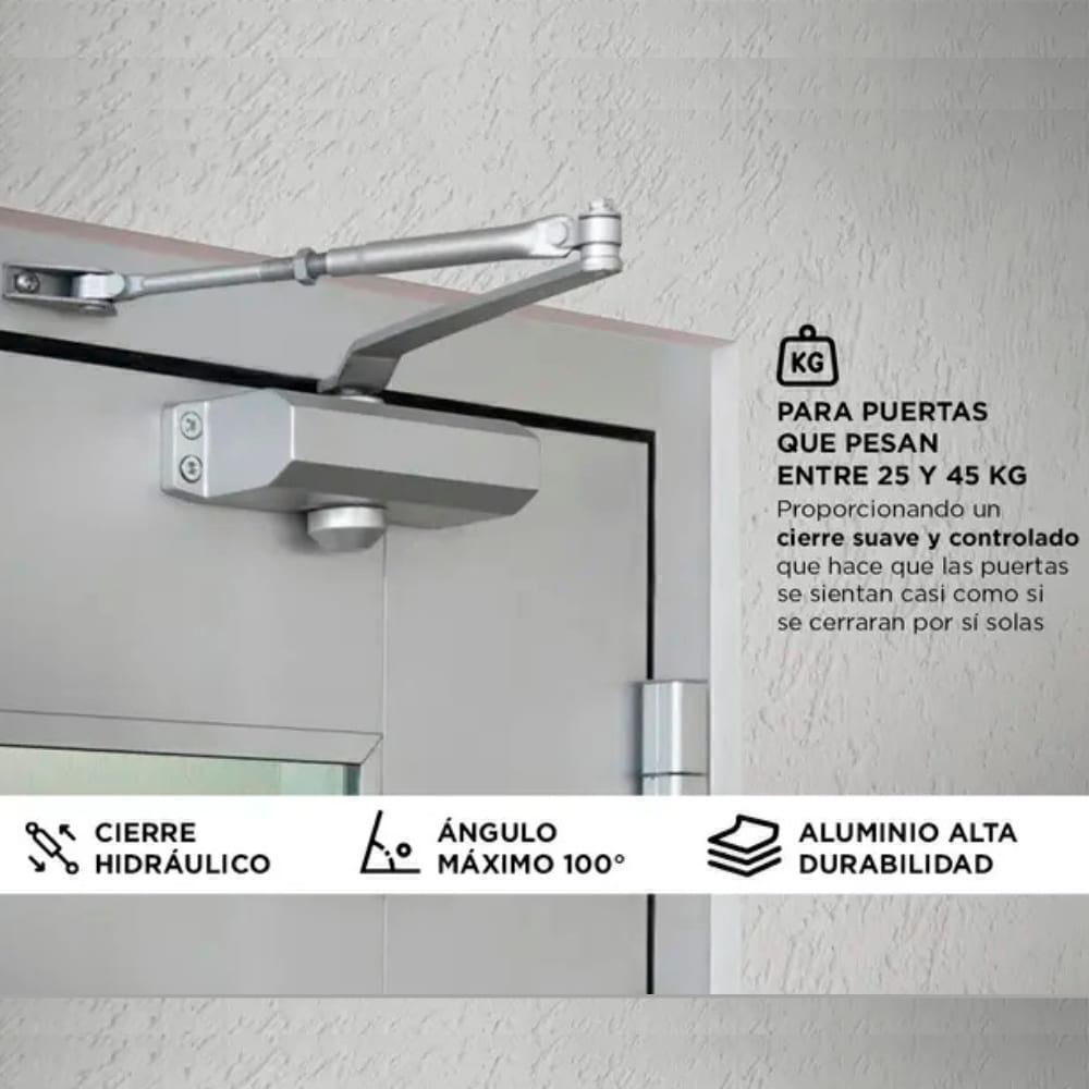 ¡Presentamos nuestro Cierre Hidráulico Brazo Cierra Puerta Aéreo, la solución perfecta para garantizar la seguridad y comodidad en tus espacios!Este innovador dispositivo ha sido diseñado con precisión para puertas que pesan entre 25 y 45 kilogramos, proporcionando un cierre suave y controlado que hace que las puertas se sientan casi como si se cerraran por sí solas.Nuestro cierre hidráulico ofrece una experiencia excepcional al usuario, permitiéndote abrir y cerrar puertas con facilidad, eliminando golpes y portazos molestos. Además, su diseño aerodinámico y elegante se integra perfectamente en cualquier ambiente, desde oficinas hasta hogares, pasando por espacios comerciales.