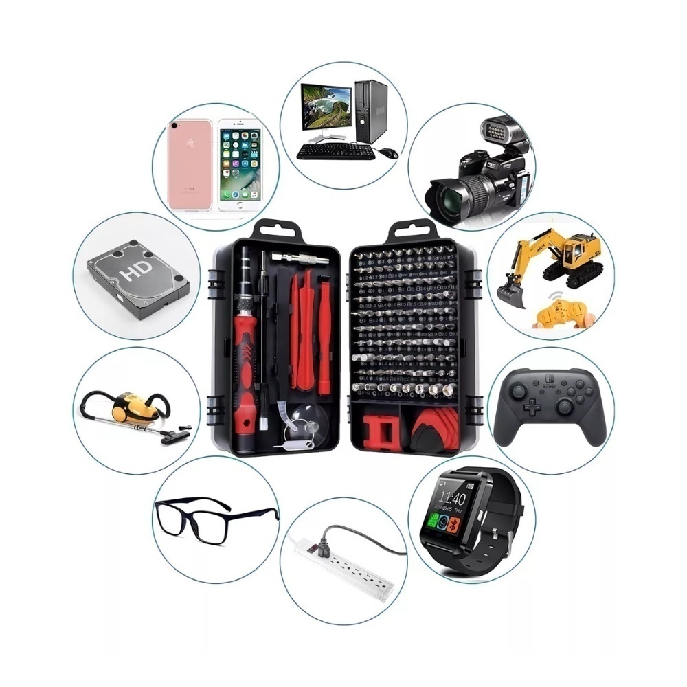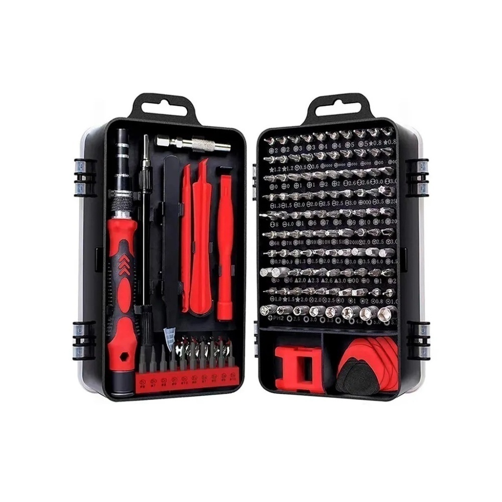 COLOR SUJETO A DISPONIBILIDAD.Kit Herramientas Precision 115 En 1 Celulares Pro' es un set de precisión diseñado de manera profesional y práctica. Su aspecto es hermoso y es fácil de llevar. Los mangos están diseñados de acuerdo con la forma de la mano de la mecánica del cuerpo humano y agregan una tapa trasera en espiral para que la operación sea más cómoda y ahorre mano de obra. Los lotes de trajes están diversificados, adecuados para el desmontaje de varios artículos, confiables y duraderos.Especificaciones:• Material: Destornillador de mango de plástico• Tamaño: Abrazadera: 122 mm / 4.8 ", agarre: 98 mm / 3.86", lote: 26-28 mm / 1.02-1.1 "(imagen de referencia de tamaño específico)Detalles del juego de destornilladores 115-IN-1:• 17 accesorios de desmontaje• 1 x mango• 1 x eje de extensión flexible• 1 x barra de extensión• 1 x pinzas• 3 herramientas de palanca de plástico• 1 x extracción de tarjeta SIM para• 1 x magnetizador / desmagnetizador• 1 x ventosa• 6 x púas de apertura• 1 x Portabrocas para destornillador eléctrico• 98 puntas de destornillador• Phillips: 2 PH0000 2 PH000 2 PH00 2 PH0 2 PH1 2 PH2• Ranurado: SL1.0 SL1.3 SL1.5 2 SL2.0 2 SL2. 5 SL3.0 SL3.5 SL4.0• Trox: T1 2 T2 2 T3 2 T4 2 T5 T6 T7 T8 T9 T10 T15 T20• Pentagonal: 2 P2 0.8 2 P5 1.2 P6 1.5 P8 2.0• Hex: H0.7 H0.9 H1.3 H1.5 H2.0 H2.5 H3.0 H3.5 H4.0 H4.5 H5 H6• POZI: PZ000 PZ00 PZ0 PZ1 PZ2• Tri-punto: 2 Y0.6 Y2.0 Y2.5 Y3.0• Triángulo: 2.0 2.3 2.6 3.0• Forma de “U”: 2 U2.6 2 * U3.0 U8• Cuadrado: S0 S1 S2• MEDIO: W2.0 W2.0• SIM: 0.8 1.0• 4MM Zócalo: M2.5 M3.0 M3.5 M4.0 M4.5 M5.0 M5.5• ICS: PH2