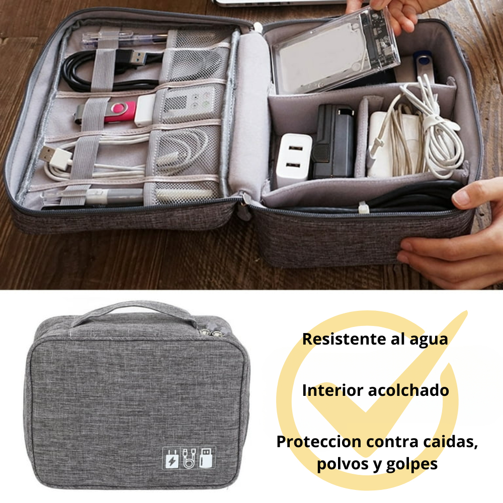 Compartimentos ajustables: la parte inferior de nuestro organizador de electrónica tiene tres separadores acolchados gruesos desmontables con velcro, puedes hacer los compartimentos inferiores de acuerdo con el tamaño de tus accesorios y herramientas para mantener tus accesorios electrónicos limpios y ordenados.Mantén todo organizado: la bolsa de almacenamiento de electrónica tiene múltiples bolsillos, lo suficientemente grande como para almacenar tus accesorios electrónicos. Excepto 3 separadores desmontables, hay 5 bolsillos de malla con bucles elásticos, puede contener sus accesorios electrónicos diarios, tales como cables, varios cargadores, auriculares, adaptador electrónico, etc.Resistente al agua y a los golpes: la bolsa organizadora de viaje para cables está hecha de tela impermeable 300D, material interior acolchado grueso que ofrece una excelente protección para tus accesorios electrónicos de arañazos, polvo y caídas accidentales, todas las cosas en el interior están protegidas muy bien.Perfecto para viajar: el tamaño portátil te permite ponerlo en una mochila, bolsa de hombro o maleta fácilmente. Además, el mango cómodo y duradero ayuda a llevar tus elementos esenciales contigo dondequiera que vayas, es un gran organizador para uso en la oficina y viajes.