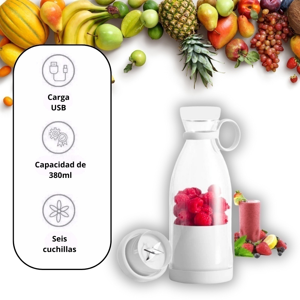 Esta botella licuadora portátil es tu solución para disfrutar de tus batidos y smoothies frescos en cualquier lugar. Con un diseño compacto y práctico, su capacidad de 380ml, es ideal para preparar tus mezclas favoritas. Se carga fácilmente mediante un cable USB que viene incluido, proporcionando comodidad para su uso diario.Tu compañera perfecta para disfrutar de tus batidos y smoothies favoritos sobre la marcha. Con su recarga por USB, diseño compacto, se convierte en una opción práctica y conveniente para mantener tu rutina de comida saludable en cualquier lugar y en cualquier momento.Características:Portátil y Práctica: Su diseño compacto la hace fácil de llevar a cualquier lugar.Capacidad Ideal: Con una capacidad de 380ml, es perfecta para batidos y smoothies individuales.Recargable por USB: Se carga de manera conveniente con el cable USB incluido.Fácil de Usar: Solo agrega tus ingredientes, presiona el botón y disfruta de tus bebidas frescas.