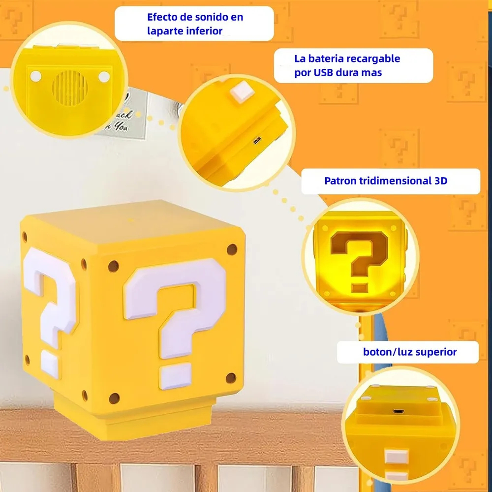 Luz nocturna de Mario Bros para niños con efectos de sonido de juego, decoración de luz nocturna, mercancía como regalo para niños y fanáticosCuando se presiona esta lampara noche para encenderla, ¡oirás el sonido clásico de la moneda de oro del juego! ¡También habrá un efecto de sonido de finalización del juego al apagar la lámpara de escritorio!Esta luz nocturna realmente restaura la escena del juego. Se puede colocar sobre la mesa y presionar hacia abajo para encenderla, o se puede pegar en la librería y presionar hacia arriba para encenderla. Entorno de juego de simulación real, te llevará a experimentar el sentimiento de mario!La forma pequeña y linda puede decorar la habitación de su hijo, se puede usar como luz de noche, lámpara de escritorio, lámpara de noche, se enciende con un solo toque, muy conveniente. Del mismo modo, si usted es un fanático de los juegos, ¡También puedes usar esta luz nocturna como coleccionable para decorar la sala de juegos, matando dos pájaros de un tiro!Alimentado por USB, puede conectar las luces y la alimentación mediante un cargador móvil, PC, computadora portátil y cualquier enchufe USB de 5 V.Esta luz nocturna de Mario no solo puede ser un regalo de cumpleaños, un regalo de Navidad y un recuerdo de fiesta para los niños, ¡sino también un regalo genial de Mario para los fanáticos de los juegos!Y la luz es suave y cálida, también se puede usar como un luces de noche para niños pequeño
