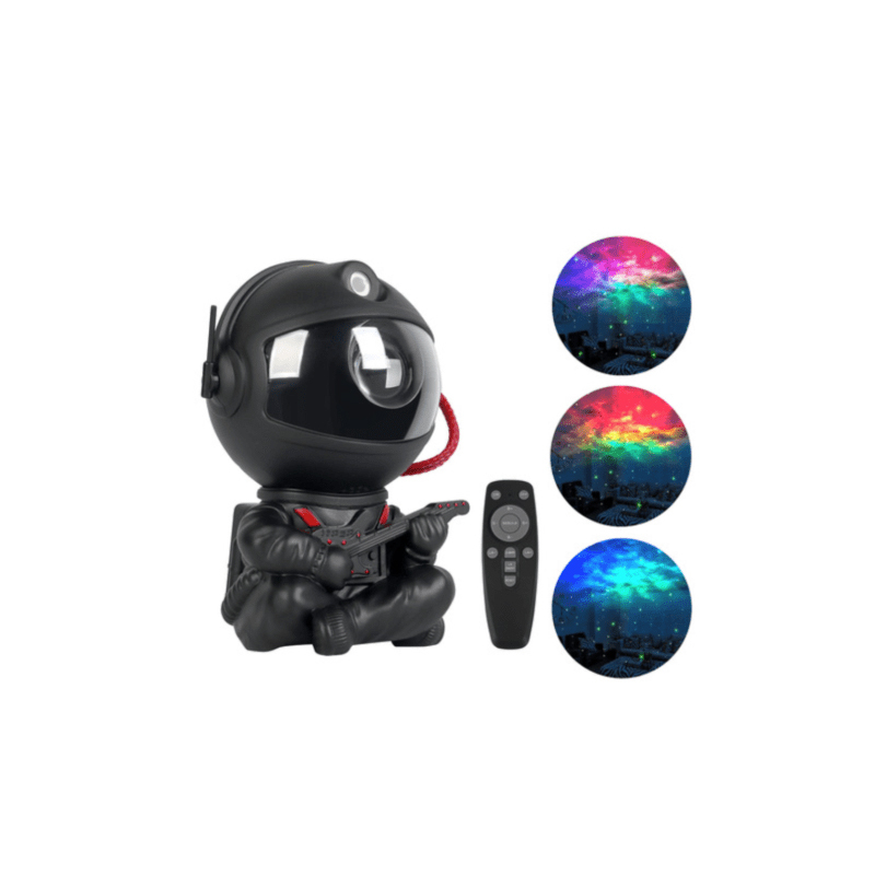 CaracterísticasMúltiples efectos de galaxia: 8 efectos de nebulosa diferentesControles inteligentes: brillo y velocidad de las estrellas ajustablesMultifunción: modo nebulosa y luz estelarCronometraje sin esfuerzo – Dos modos de cronometraje: 40min, 90minProyección de 360°: ángulo de proyección totalmente ajustableQué hay en la caja– Proyector Astronauta sentado– Control remoto– Cable USB– Manual de usuarioDATOS TECNICOS:– Color de la nebulosa: Multicolor (monocromo controlable)– Material de la carcasa: ABS/PVC– Potencia de salida: 5V/1A– Longitud del cable USB: 1 m– Tamaño: 12,5 cm. x 8,5 cm. x 7,6 cm. aprox.– Tipo de enchufe: USB– Longitud de onda del láser: 523 mm– Potencia del LED: 5 W– Alimentacion control remoto: 2 pilas AAA (no incluidas)– Peso neto del producto: 280 g