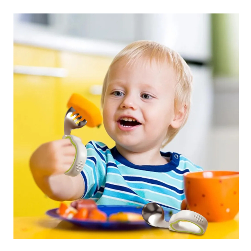 Cuchara y Tenedor para BebésAcompañá los primeros intentos de tu bebé por comer solito con este set especialmente diseñado para pequeñas manos y bocas sensibles. Ideal para niños entre 6 y 12 meses, promueve la autonomía de forma segura y divertida.Con diseño ergonómico y curvo, facilita el agarre y el uso, ayudando al desarrollo de la motricidad fina. Fabricados en silicona suave, cuidan las encías sin causar molestias y no tienen bordes filosos que puedan lastimar.Son ligeros, fáciles de manejar y totalmente seguros para uso diario, ya que están libres de BPA. Además, vienen con un práctico estuche plástico que los hace ideales para llevar en la pañalera o bolso cuando están fuera de casa.Características principales:Silicona flexible y amigable con las encíasBordes redondeados para mayor seguridadFácil de sujetar con manitos pequeñasApto para uso desde los 6 mesesIncluye estuche de transporteSin BPAMedidas aproximadas:Cuchara y tenedor: 12 cm de largo x 5 cm de ancho