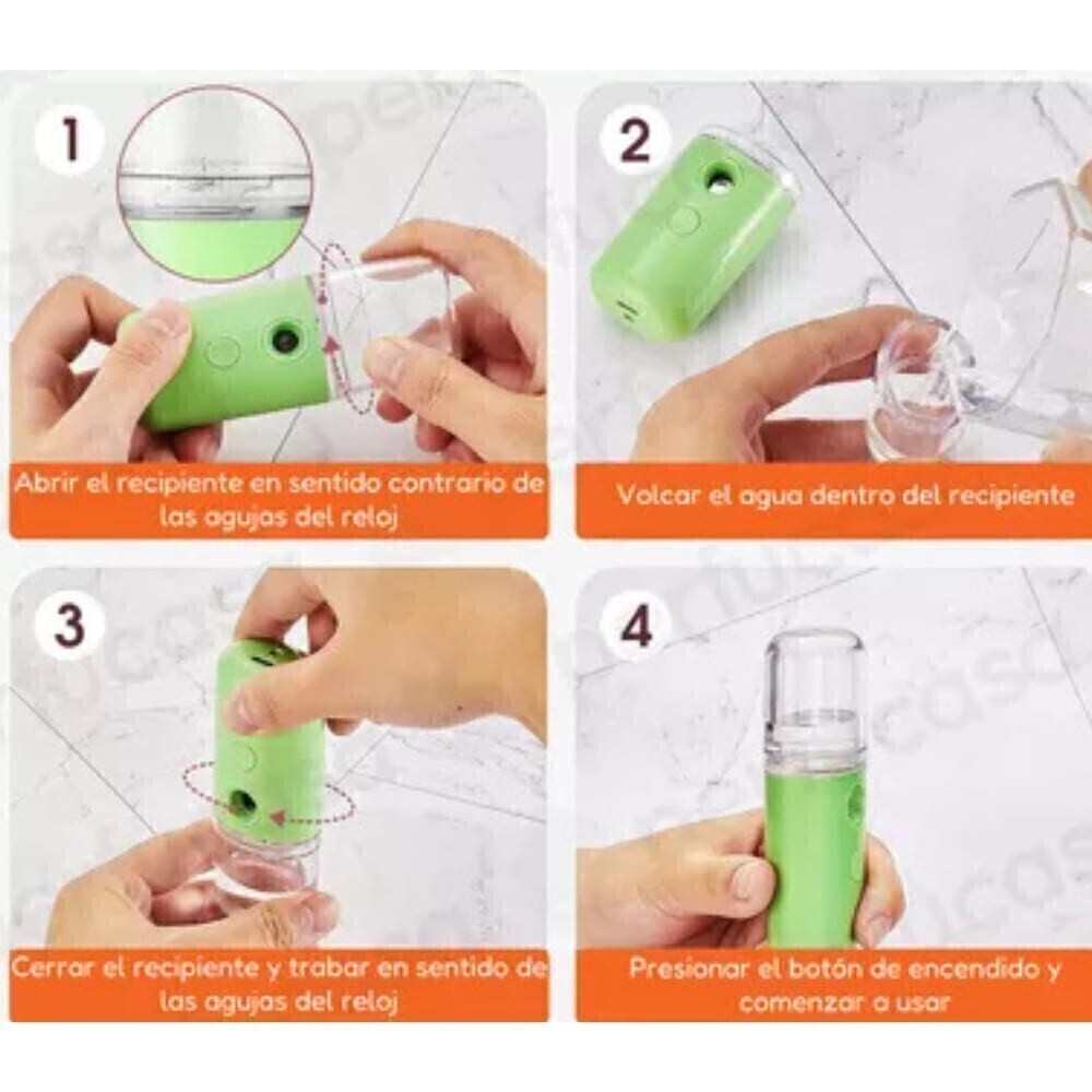 El Nano Mist Sprayer es un dispositivo facial portátil que proporciona una hidratación profunda y refrescante mediante una fina niebla de agua o soluciones faciales. Utiliza tecnología de micro-nebulización ultrasónica para facilitar una absorción más rápida y profunda.Portátil y compacto, es ideal para usar en cualquier momento y lugar. Funciona con batería recargable vía USB y viene con un cable de carga. Perfecto para refrescar la piel en condiciones de calor, aire acondicionado o ambientes secos, mejorando la absorción de tónicos, sueros y cremas.Su elegante diseño minimalista incluye un botón de encendido fácil de usar y una boquilla que distribuye el vapor uniformemente. Disponible en colores surtidos: rosa, blanco, verde y celeste. Es un complemento ideal para tu rutina de belleza y un regalo perfecto para cualquier ocasión.No se puede elegir color, aleatorio.
